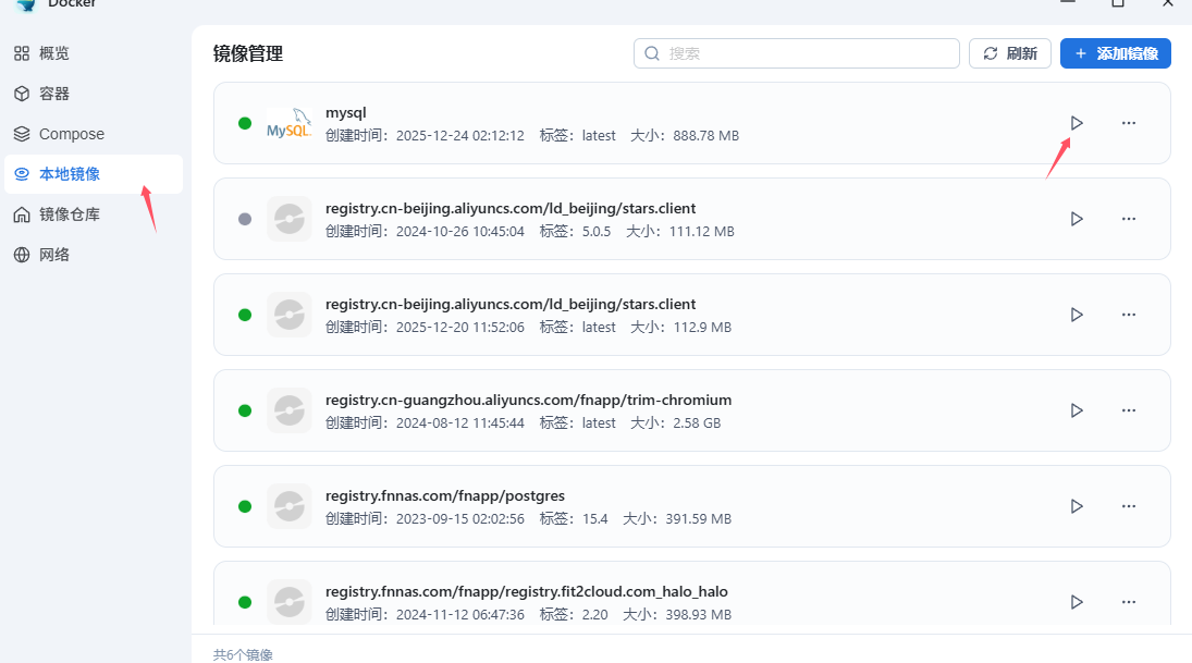 打开桌面的【Docker】应用,本地镜像库中