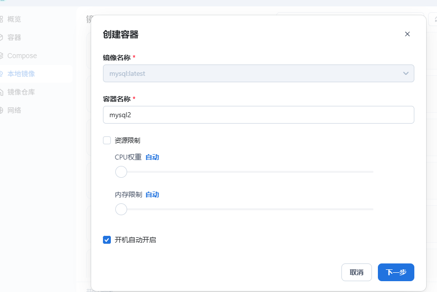三、添加容器并启动容器