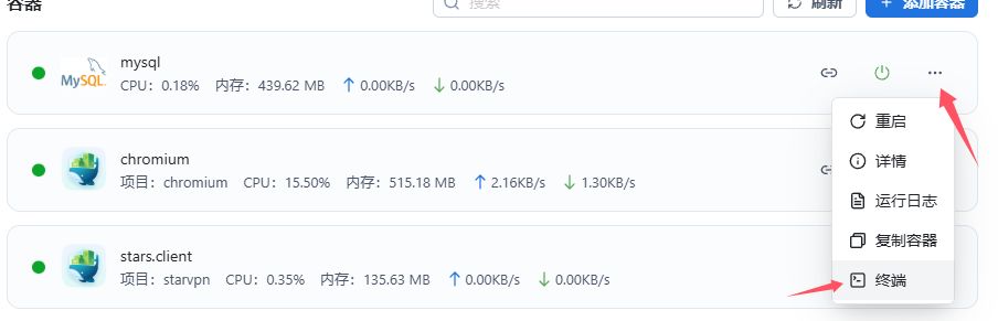 点击运行按钮添加容器